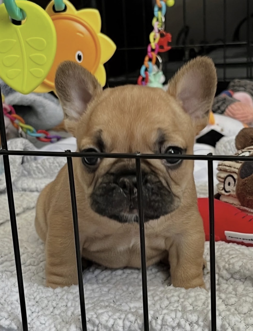 our adorable 8-week-old French Bulldog! This little one is playful, affectionate, and loves being around people.