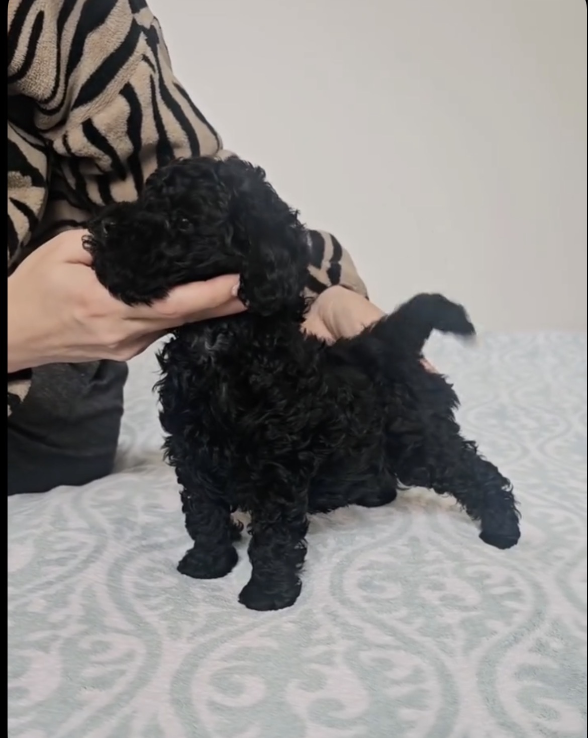 Rehome Your Black Poodle – our adorable 11-week-old female Black Poodle! Friendly and gentle, she gets along wonderfully with strangers and even loves playing with our cats. This little lady is full of charm and energy, making her the perfect companion for anyone looking for love and friendship.